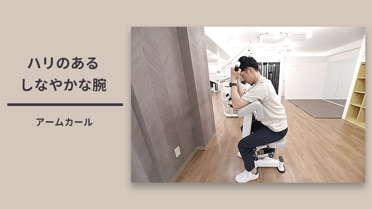 5つ目のマシン「アームカール」では、主に上腕二頭筋を鍛えることができます。