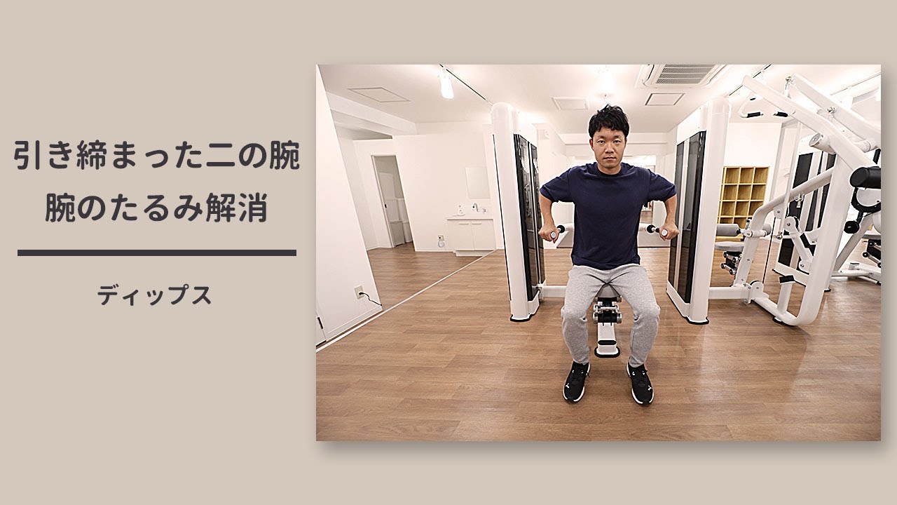6つ目のマシン「ディップス」では、主に上腕三頭筋を鍛えることができます。